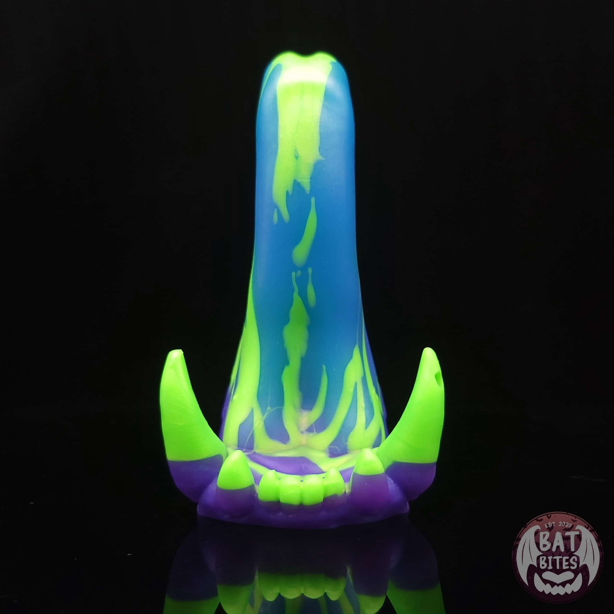Even though she may be made of stone, Spire is surprisingly soft! Her smooth gently curved tongue rests upon a mess of long sharp fangs. Subtle nubs and a textured underside make for a unique ride.