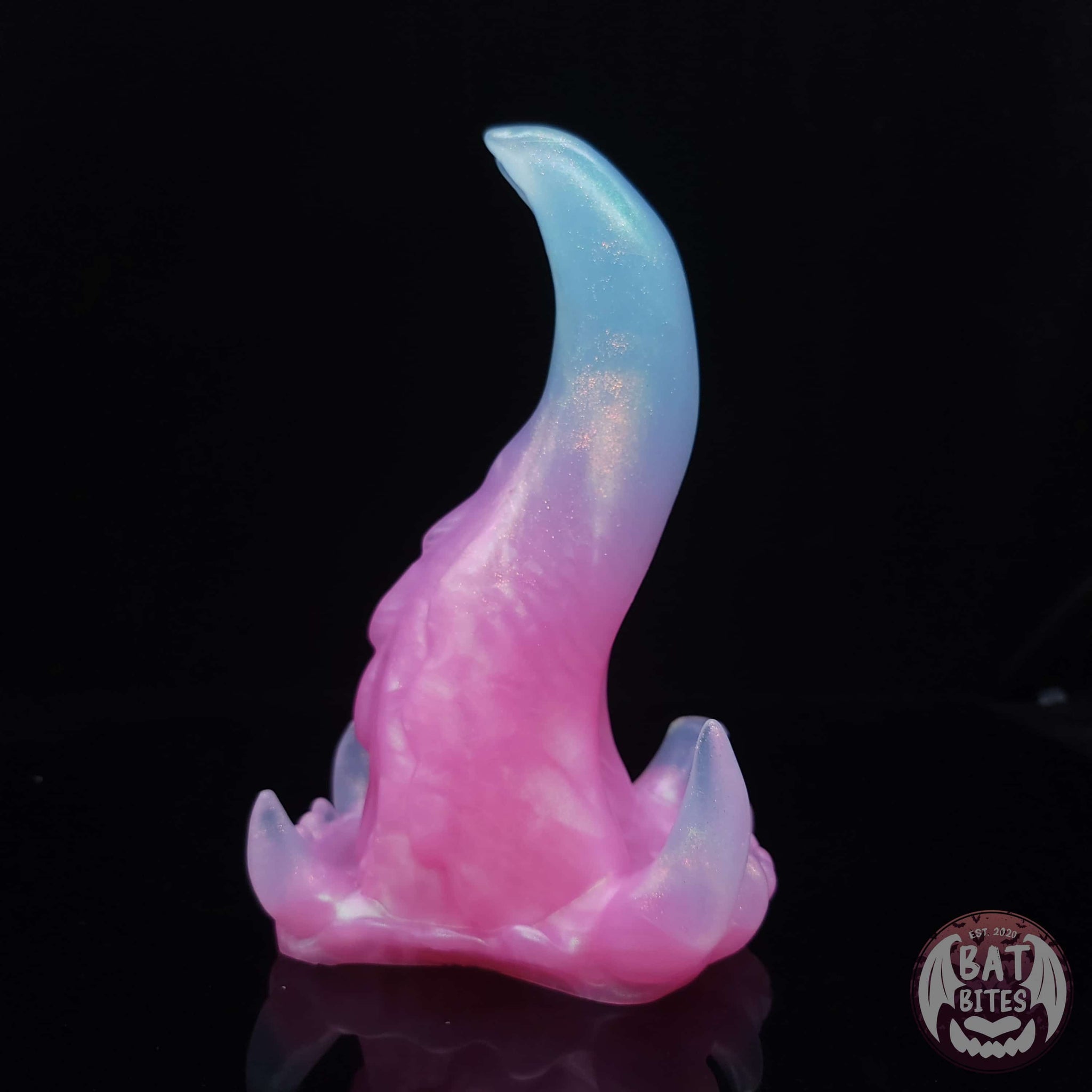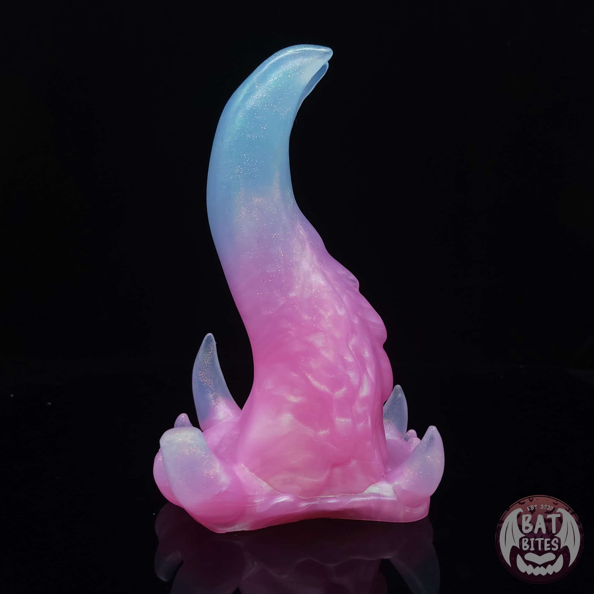 Even though she may be made of stone, Spire is surprisingly soft! Her smooth gently curved tongue rests upon a mess of long sharp fangs. Subtle nubs and a textured underside make for a unique ride.