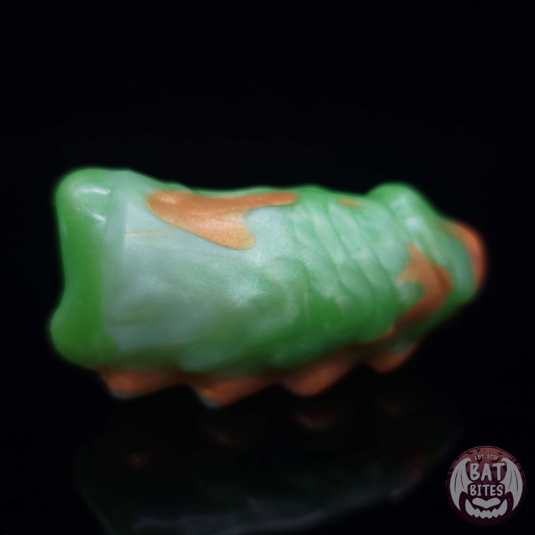 Rend is on the prowl and ready for action, will you be lucky enough to come across him on one of his hunts and let this demon possess you and endow you with his barbed shaft? This closed ended mini stroker is designed for folks with vulvas and can suction onto most size anatomies. The thin base of this design is meant to be more conducive for folks’ with recessed bits that traditional mini strokers have trouble reaching. A row of stimulating bumps and ridges line the entrance of the channel with gentle ridges lining the deeper portions. The oblong oval opening allows for better suction than commonly seen round openings.